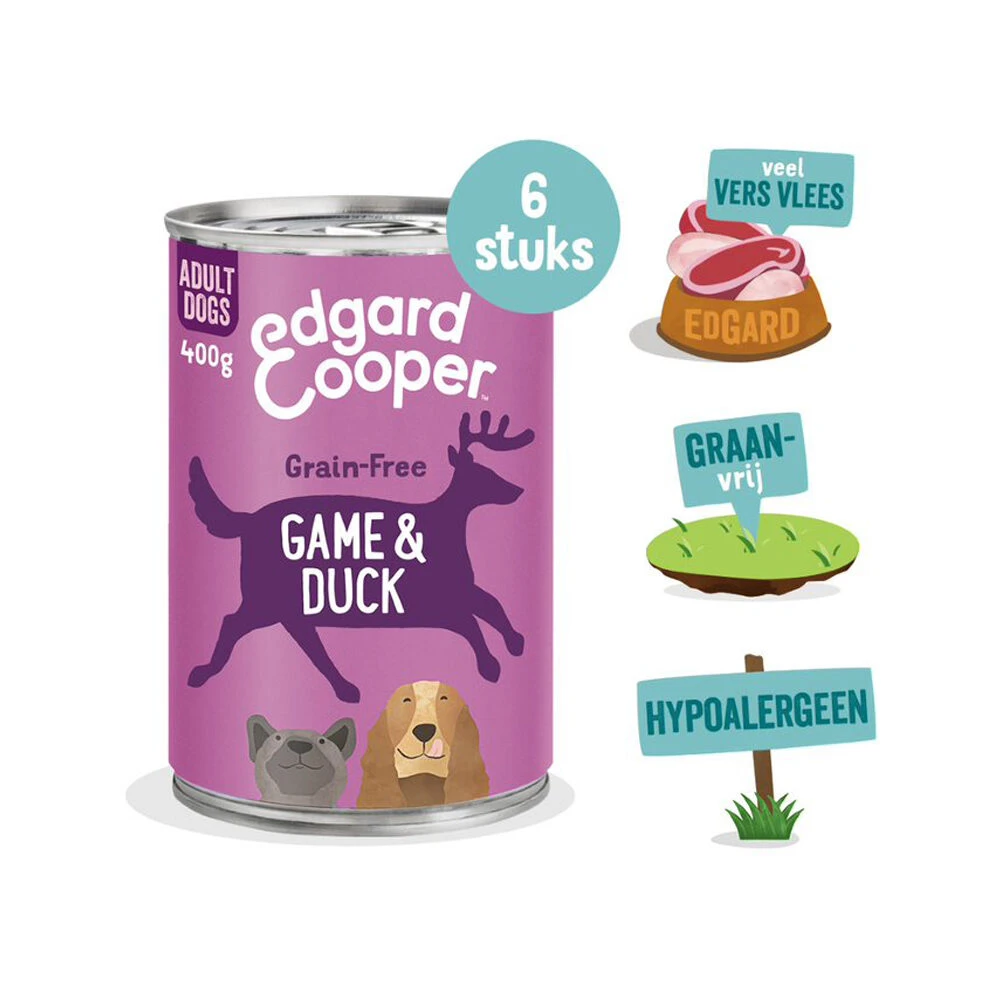 Edgard & Cooper Adult – Wild & Eend – Blik is ook als smakelijke hondenbrok verkrijgbaar.