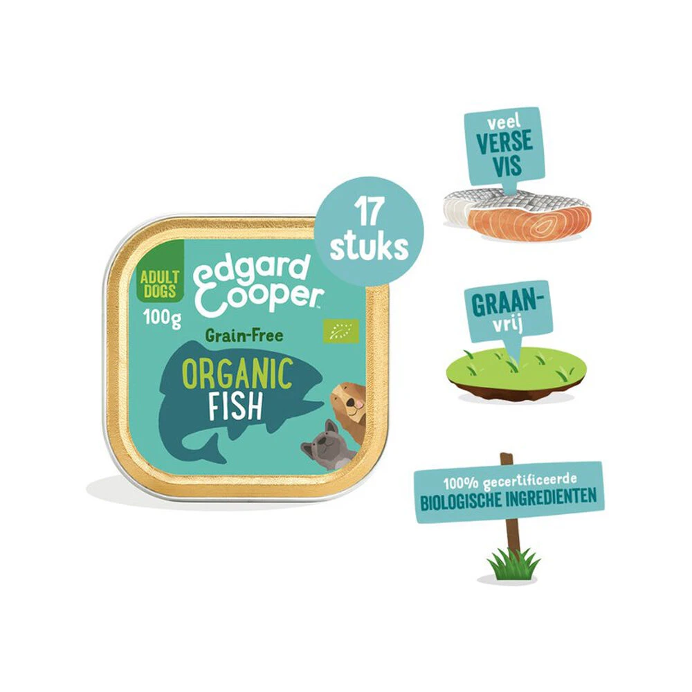 Edgard & Cooper Biologisch Adult – Vis – Kuipje was voorheen Edgard & Cooper Biologisch Adult Dog Vis. De informatie op de verpakking is duidelijker gemaakt en het recept is verbeterd.
