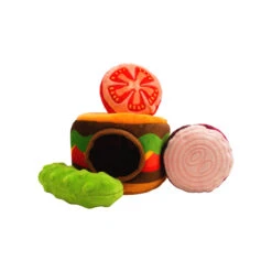 Laat uw viervoeter zijn eigen burger samenstellen met de PawStory Snuffles Jumbo burger. De vulling is gemaakt van gerecycled plastic. De ui, tomaat en augurk zorgen voor extra veel speelplezier. In ieder ingrediënt zit namelijk een pieper en u kunt uw viervoeter uitdagen door ze te verstoppen in de burger. Let op, de Snuffles Jumbo burger is niet geschikt voor sterke kauwers.