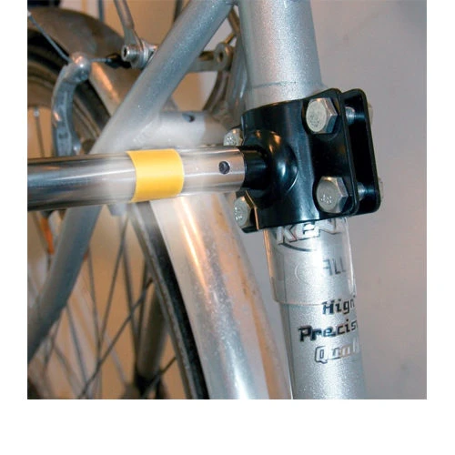 De fietsbeugel is gemaakt van metaal. Het bijgeleverde riempje is zwart.